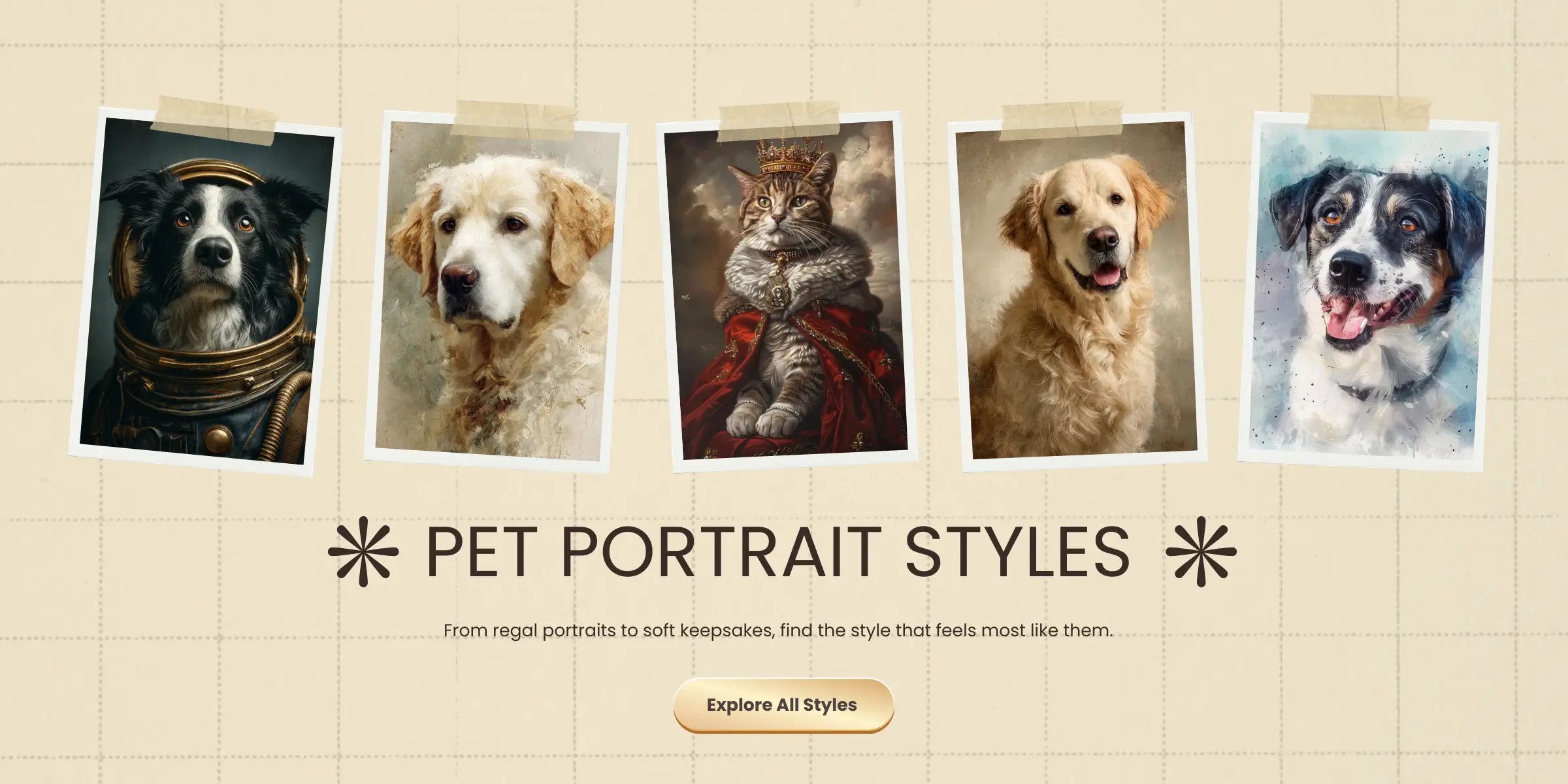 Pick the portrait style that feels most like them — from classic to royal to keepsake-inspired.